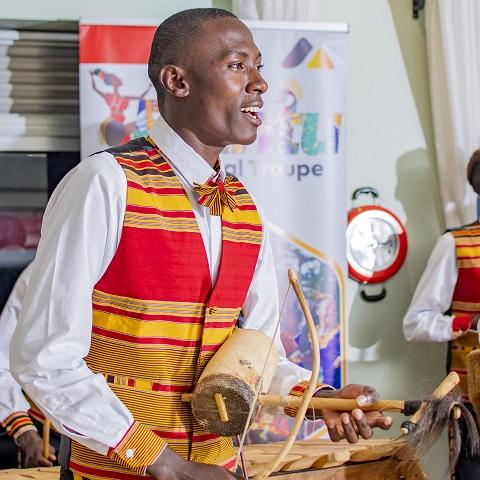 From an early age, Anthony was taught the art of making and playing traditional instruments—a skill that became his ticket to greater opportunities. Due to his growing skills in playing instruments, he joined a community dance troupe - Nkalu Artists - through which he later became part of the Rockies Organization.